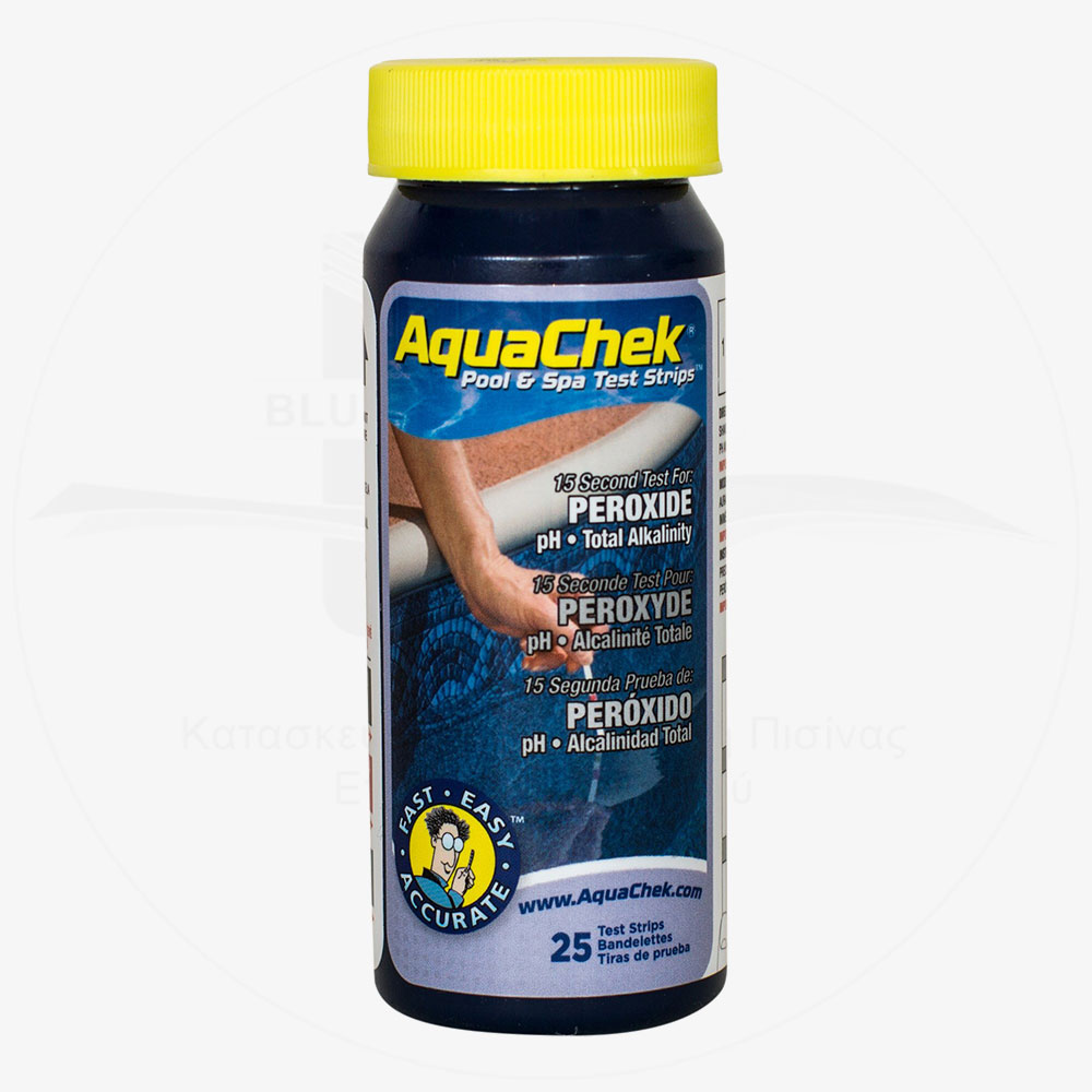 Aquachek Swimming pool and spa test strips to measure peroxide 25 strips per bottle.