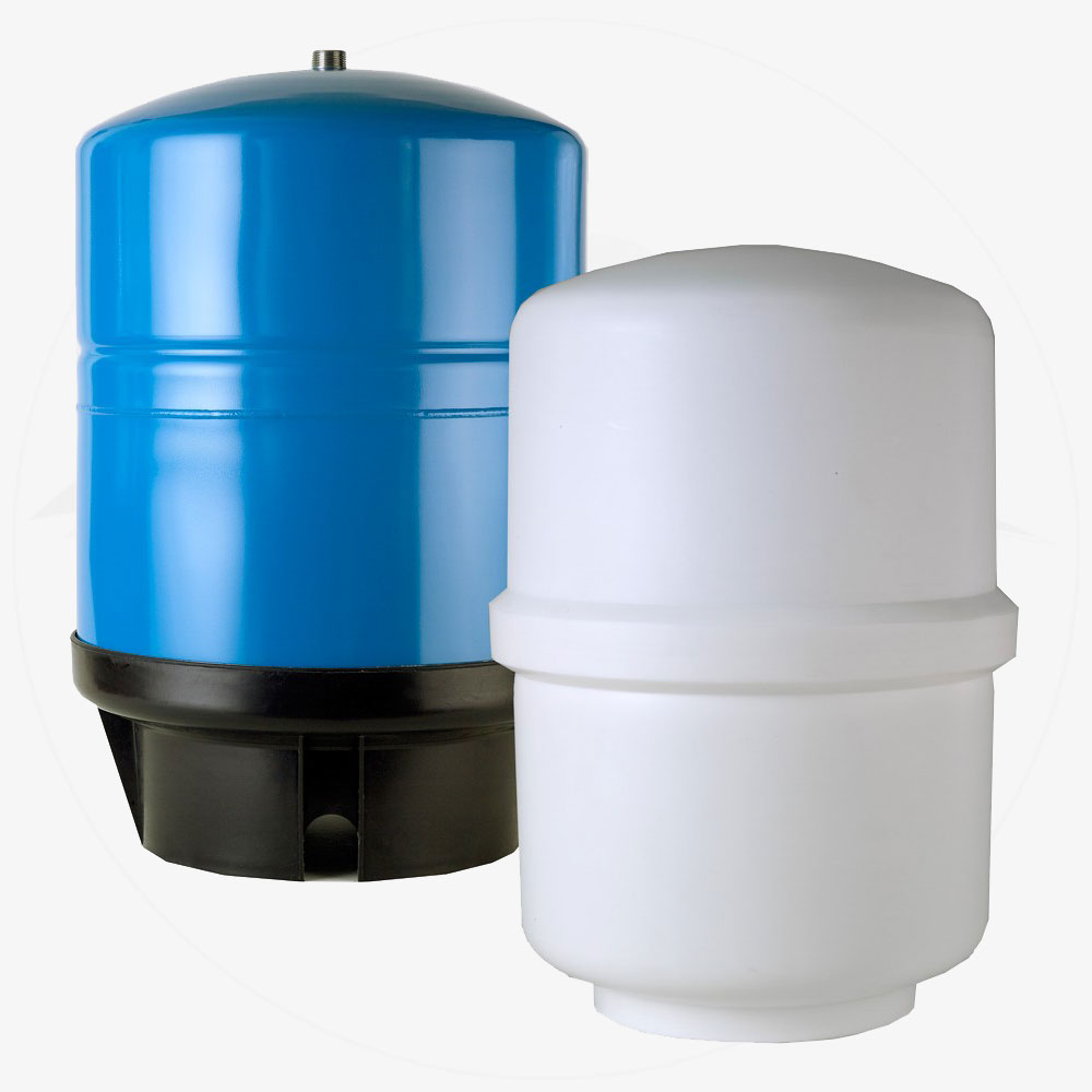 Drinking water storage tank for reverse osmosis devices.